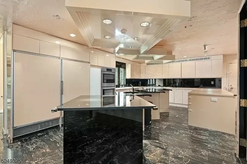 Before renovation, this Livingston residence was a bold expression of a very specific era. The home was a custom contemporary build rooted firmly in the 1980s, carrying all the hallmarks of that period's high-end residential aesthetic: angular architecture, dramatic interior volumes, and a heavy reliance on materials that announced themselves loudly.